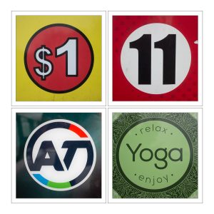 In today’s chaotic visual culture, we’re bombarded daily by thousands of these symbols. For this series, I’ve chosen to isolate a small fraction—specifically, circular forms—encountered during my regular walk to the studio.